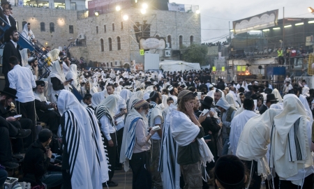 Jerusalem / Israel - July 5 - 2012 : A group of Jewish men praying at the Western Wall