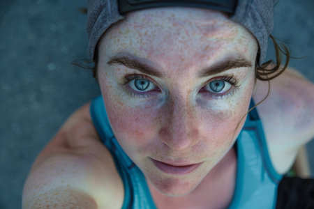 Close-up of a post-workout selfie, displaying a tired but triumphant expression.