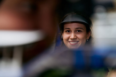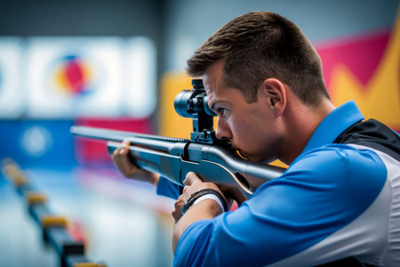 An athlete prepares for a competition, striving to achieve accuracy and performance