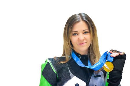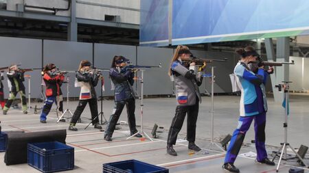 6-12-2019 RUSSIA, KAZAN: BULLET SHOOTING. girls are standing and preparing to shoot