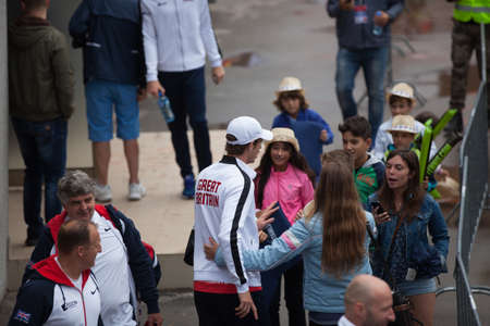BELGRADE, SERBIA - JULY 16 . British tennis player Andy Murray talking with child fans on the quaterfinal of Davis Cup 2016 on july 16, 2016 in Belgrade, Serbia