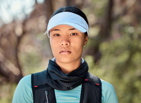 Out here to conquer it all. Portrait of a young woman hiking along the mountain.
