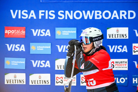 WINTERBERG, GERMANY - 15 MARCH, 2025: JEONG Haerim, KOR - VISA FIS Snowboard Alpine World Cup Winterberg 2025 at Poppenberg. For editorial use only.