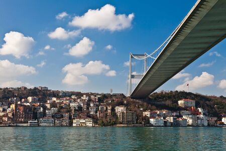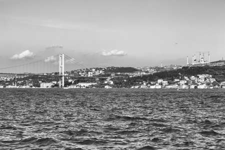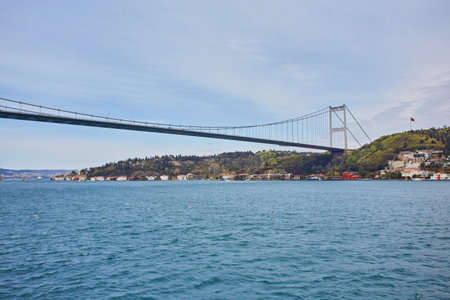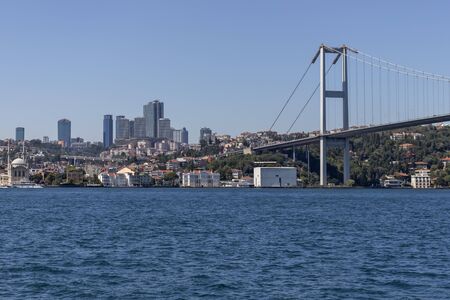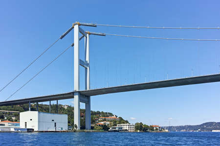 Bosphorus bridge on a summer sunny day, view from the sea, Istanbul Turkey