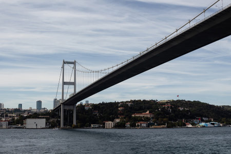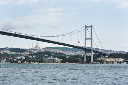 Istanbul, Turkey - August 08, 2025: 15 July Martyrs Bridge across the Bosphorus in Istanbul