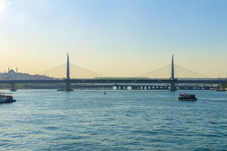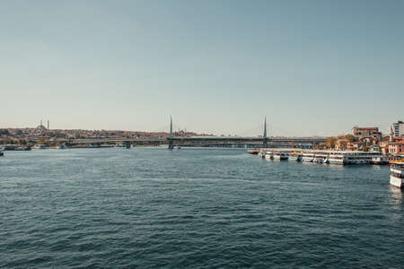 Goldenhorn, Golden Horn, Istanbul, Turkey. May 19,2022.Istanbul, the dream city between the continents of Europe and Asia. Istanbul view from the Golden Horn metro bridge.