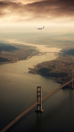 Istanbul, Turkey - October 4, 2011: Bosphorus bridge (aka: 15 July Martyrs Bridge. Turkish: 15 Temmuz Sehitler Koprusu). Top view from the sky. aerial photo. Cityscape from bird sight.