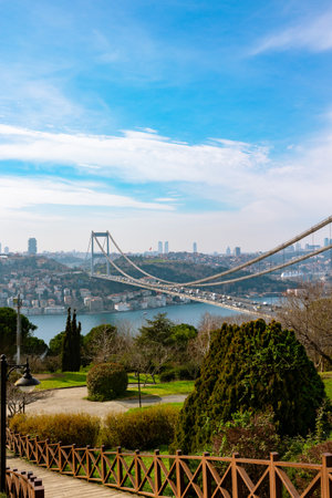 Fatih Sultan Mehmet Bridge and cityscape of Istanbul from Otagtepe. Visit Istanbul concept photo.