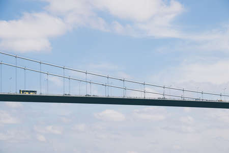 (Istanbul - Turkey 16.February.2021) It is a stretched inclined suspension bridge located on the estuary in Istanbul that enables the passage of the M2 metro line.