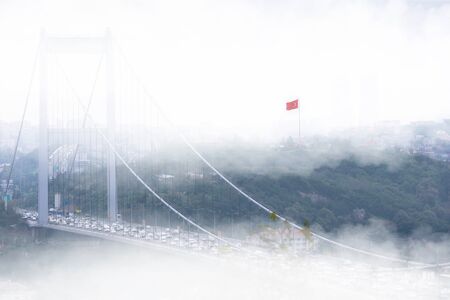 ISTANBUL, TURKEY - JULY 11, 2017: Traffic on Bosphorus Bridge. Bridge on Bosphorus connecting the european waterside of Istanbul with the asian waterside