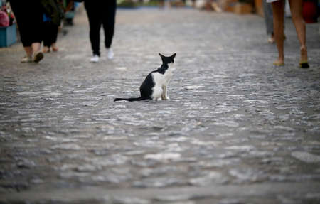 Limassol Cyprus March 20, 2020 View of abandoned domestic cat living in the streets of Limassol