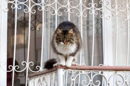 beautiful cat on the street, siberian breed of cat