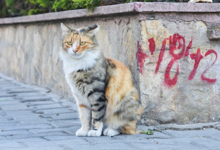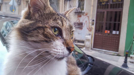 Turkish street cat. stray cat is looking at the camera.