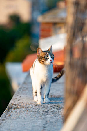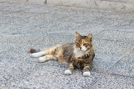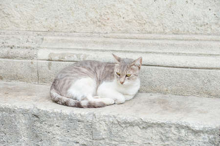 Limassol Cyprus May 01, 2020 View of domestic cat living in the streets of Limassol in Cyprus island