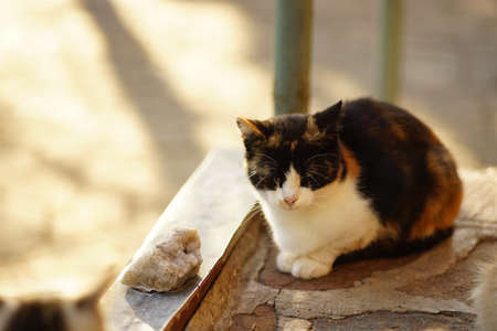 Wild cats on the streets of the Polis city, Cyprus. Cats are one of the attractions of Cyprus. homeless animals.
