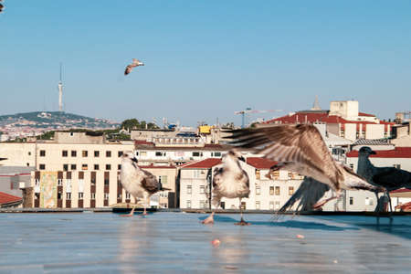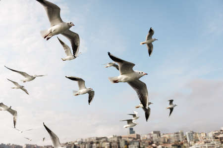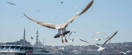 Seagulls flying over the city of Istanbul, Turkey.