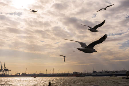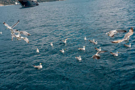 Seagulls flying over the sea, Istanbul, Turkey.