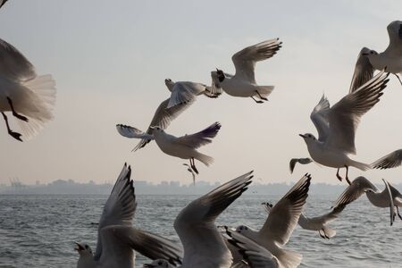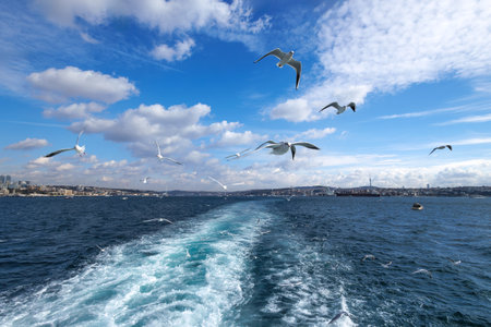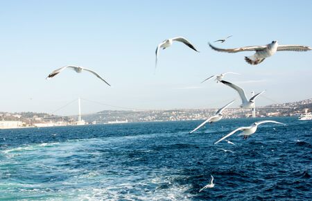 Seagulls flying in the sky of Bosphorus, Istanbul