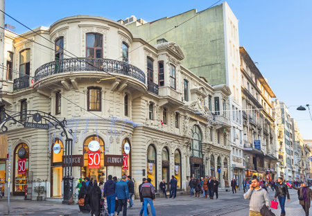 Turkey, Istanbul 20,03,2018 Istiklal Street - one of the most popular pedestrian streets in Istanbul, located in the Beyoglu district
