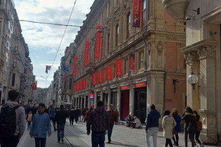 Istanbul, Turkey March 20,2023 People walking in Istiklal street. Istiklal Street is a popular tourist destination in Taksim district of Istanbul.
