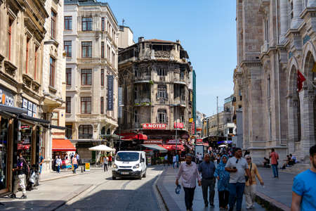 ISTANBUL, TURKEY - JULY 26, 2019: İstiklal shopping pedestrian street near Taksim Square at the center of city of Istanbul, Turkey