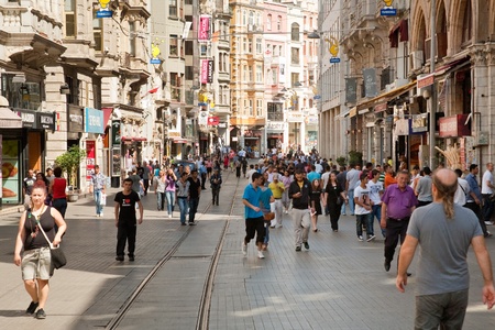 Istanbul, Turkey - August 28, 2013: People walking the famous Istiklal street in Istanbul
