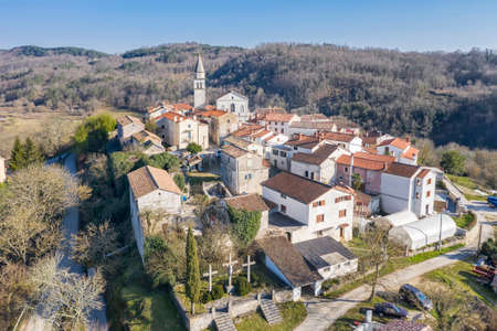 Village of Nova Vas in Istria aerial view, historic architecture of Istria, Croatia