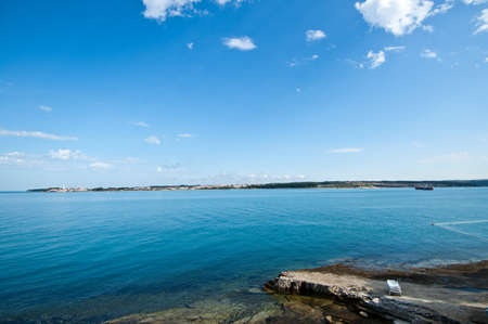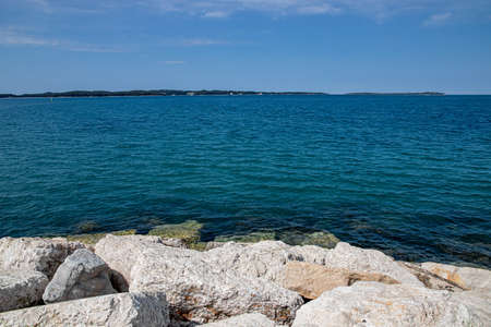 Beautiful landscape on the Adriatic Sea. Blue water on a sunny April day. Istria peninsula Pula Croatia