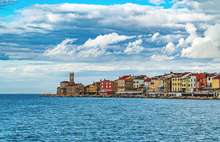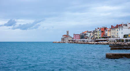 Coastline view on Piran town on the Adriatic sea in southwestern Slovenia