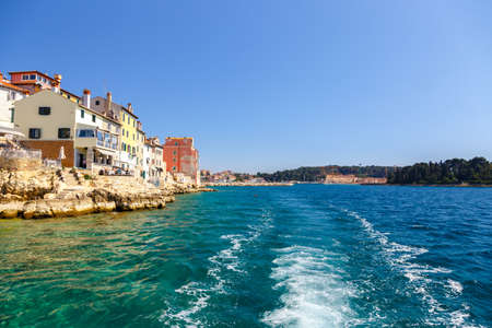 View of idyllic coastline in Rovinj town, Istrian Peninsula, Croatia