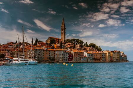City panorama of the romantic port city of Rovinj on the Adriatic Sea