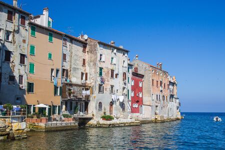 Houses facades at the waterfront in Rovinj town, Istrian Peninsula, Croatia