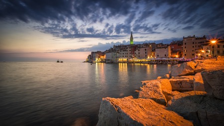 Spectacular romantic old town of Rovinj at evening