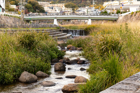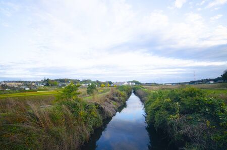 Water canal in Japan city, Beautiful landscape of Japanese public irrigation canal.