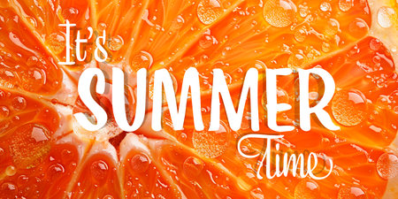 Summertime lettering with water drops on orange background.