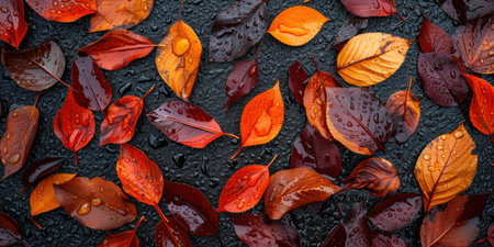 Rain-Kissed Autumn Leaves: Vibrant Hues on Damp Ground