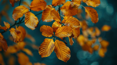 Captivating autumnal scene featuring close up views of dew covered leaves, highlighting the beauty and texture of nature in transition