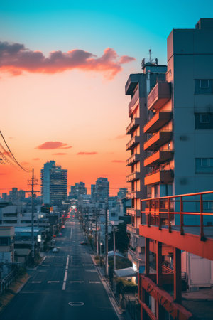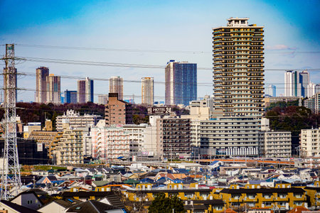 Kawasaki residential area and skyscrapers. Shooting Location: Kawasaki City, Kanagawa Prefecture