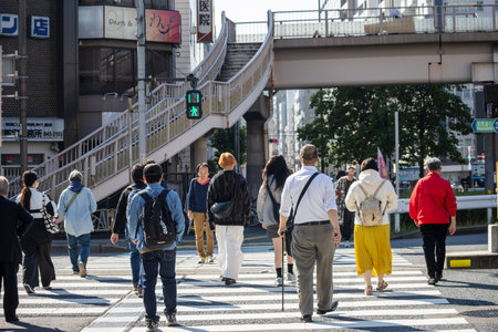 Tokyo, Japan, November 1, 2023: Pedestrians Crossing Street on Sunny Day in Tokyo