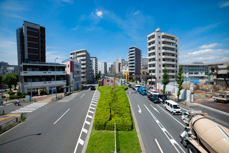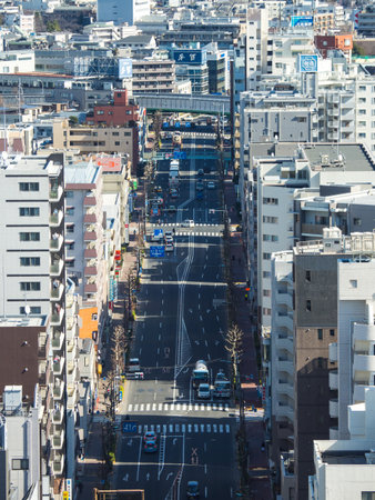 Tokyo, Japan, November 2, 2023: Street View with Vehicles and Overhead Railway Structure