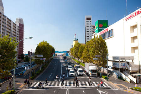 Quiet street road in Japan lockdown, most Japanese people reduce traveling during the outbreak of the virus Covid-19. November 2015,Osaka, JAPAN.