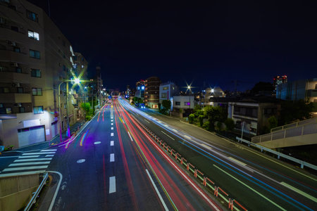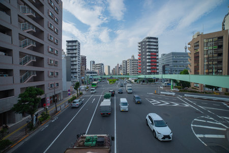 A downtown street at Kanpachi avenue in Tokyo long shot