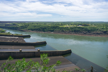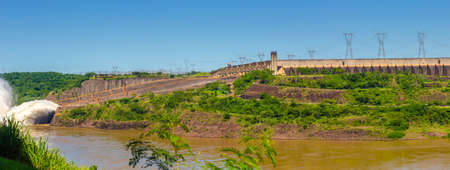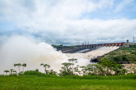 Border of Brazil and Paraguay, South America - February 27, 2015: Itaipu Hydroelectric Dam on the Parana River.