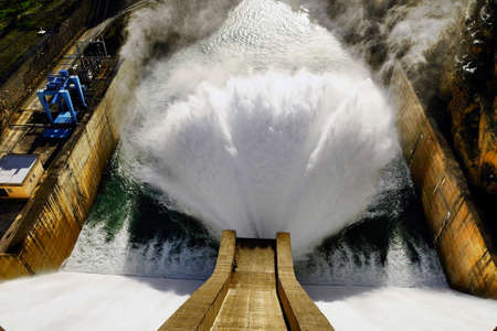 Strong stream of water at the dam hydroelectric Hoa Binh, Vietnam