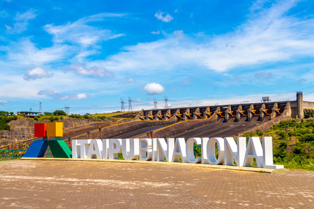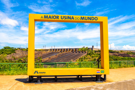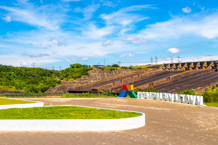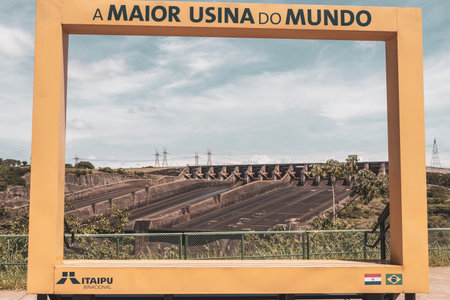 Foz do Iguacu, Brazil - july 10, 2016: The Itaipu dam sign in Foz do Iguazu in Brazil