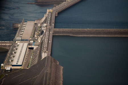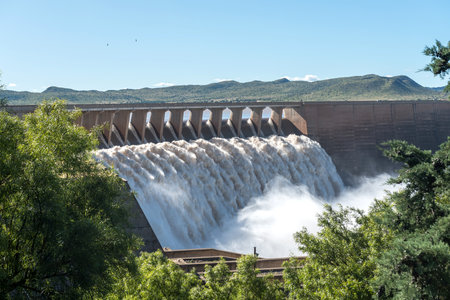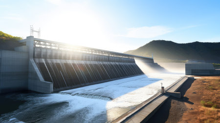 Majestic View of a Hydroelectric Dam with Flowing Waters