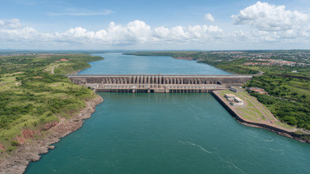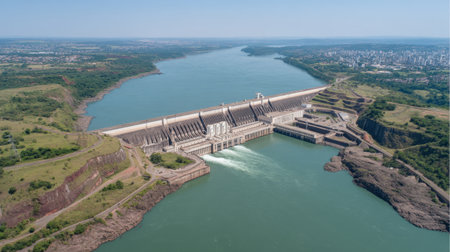 Aerial view of the Itaipu Hydroelectric Dam on the Parana River.