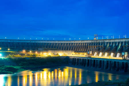 Close-up to the Itaipu Hydroelectric Dam at night.