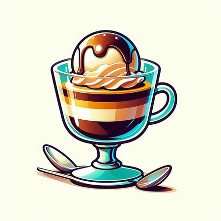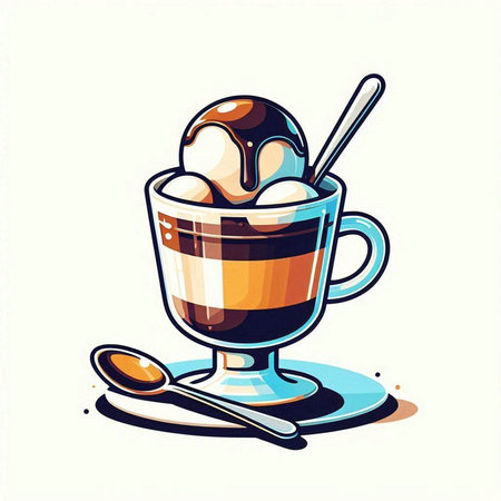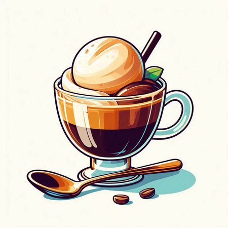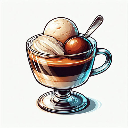 Illustration of a cup of coffee with ice cream and chocolate balls