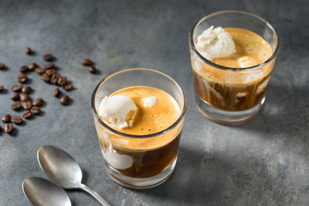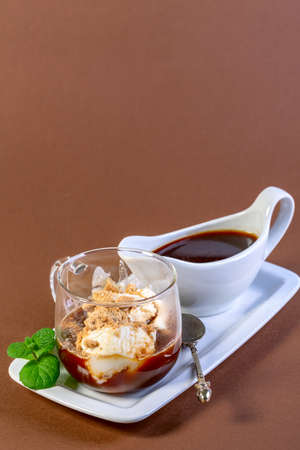 Affogato Coffee and Ice Cream with Espresso in Glass. Organic Recipe